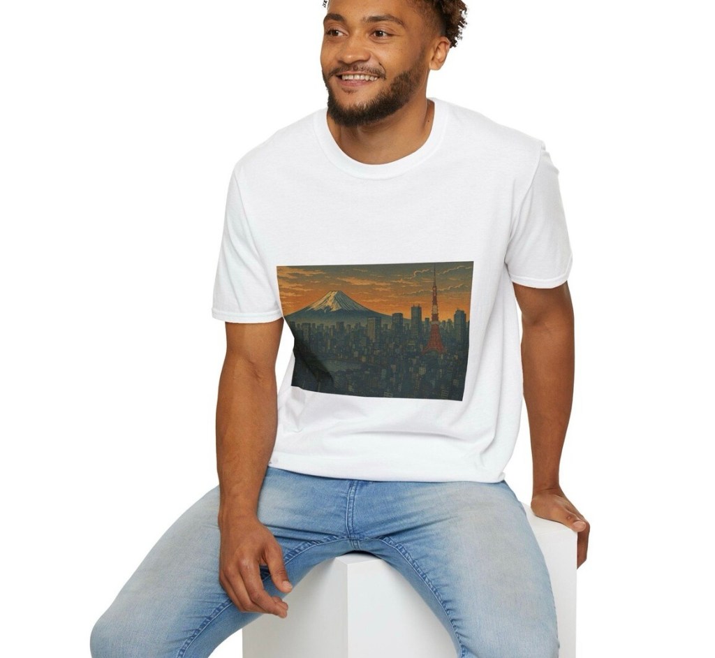 Today I’m excited to introduce one of our best-selling designs from our Etsy shop “aoito” — the Tokyo Cityscape Unisex T-Shirt, where tradition and modernity beautifully collide.